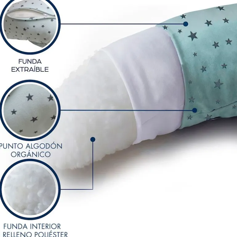 Cojín de lactancia que podrás utilizar desde el embarazo, ayudándote a conciliar el sueño y durante la lactancia para encontrar la mejor posición y se mantenga durante toda la lactancia gracias a su relleno de micro perlas.