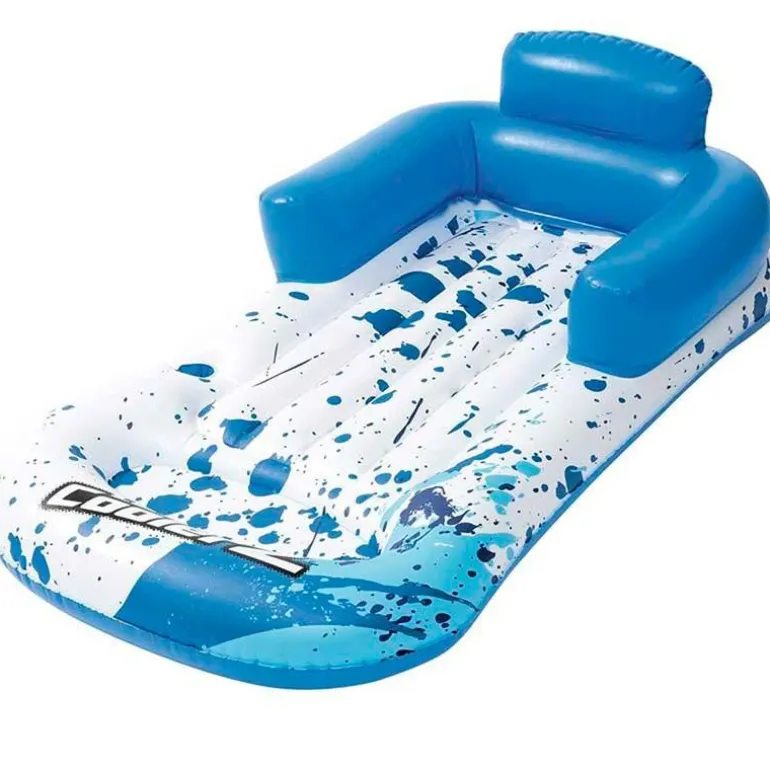 Colchoneta para la piscina o playa en forma de sillón con respaldo, posabrazos y posavasos para tu bebida. Dispone de dos cámaras de aire y estructura de gran firmeza. Tiene unas dimensiones de 189 cm x 79 cm aproximadamente.