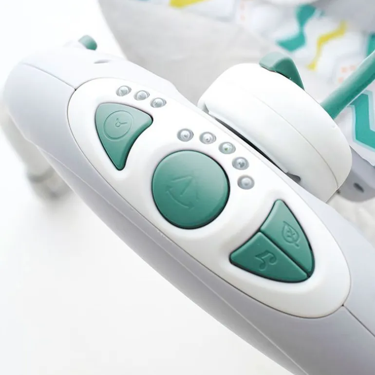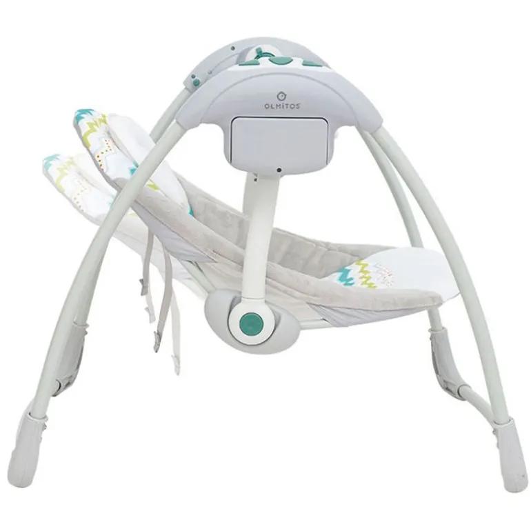 Hamaca columpio de la colección Olmitos con el que podrás calmar a tu bebé gracias a su balanceo automático de 5 velocidades con temporizador incluido. El temporizador dispone de 3 configuraciones distintas y reproduce 7 divertidas melodías con las que poder entretener al bebé. Incluye barra de juguetes giratoria y desmontable, con ajuste reclinable en 2 posiciones para una mayor comodidad del bebé, arnés de seguridad con sujeción para los hombros y reposacabezas reclinable. Se pliega fácilmente para transportar y guardar. Sus medidas son de 71 cm x 57 cm x 57.5 cm aproximadamente – plegado 25 cm x 57 cm x 57.5 cm aproximadamente. Recomendado de 0. 3 meses hasta los 9 kg.