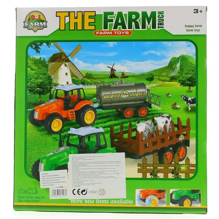 Conjunto de 3 tractores distintos con varios accesorios.