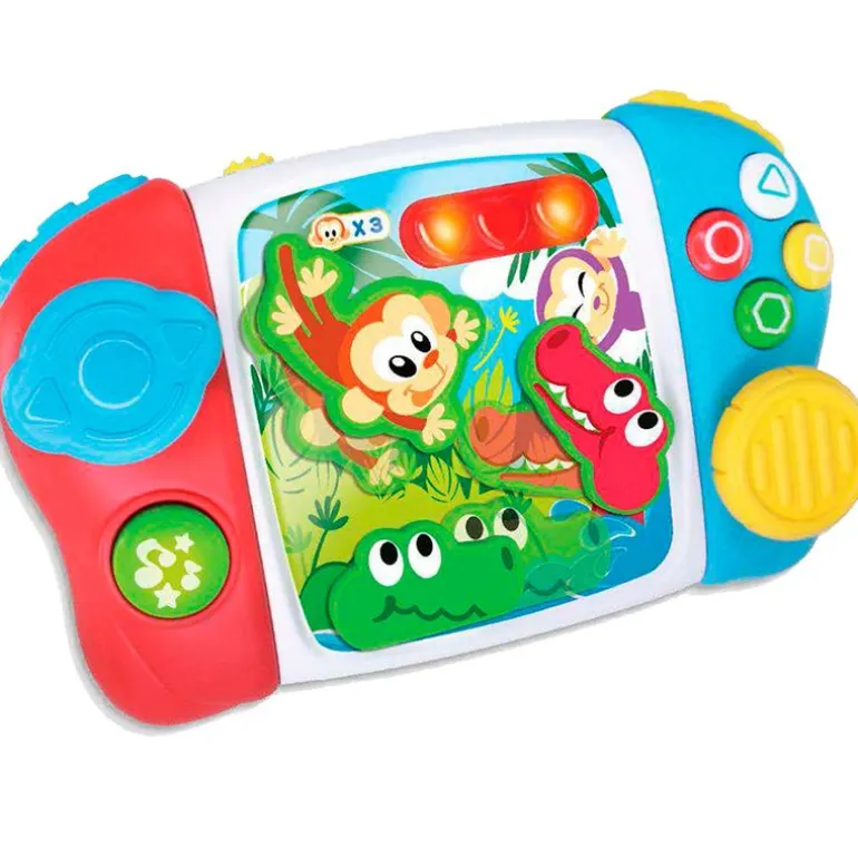 Consola portátil para los más pequeños de la casa con la que podrán “jugar”. Dispone de diferentes botones en las asas que reproduce sonidos. Funciona con pilas incluidas (pilas de demostración). Recomendado a partir de 1 año.