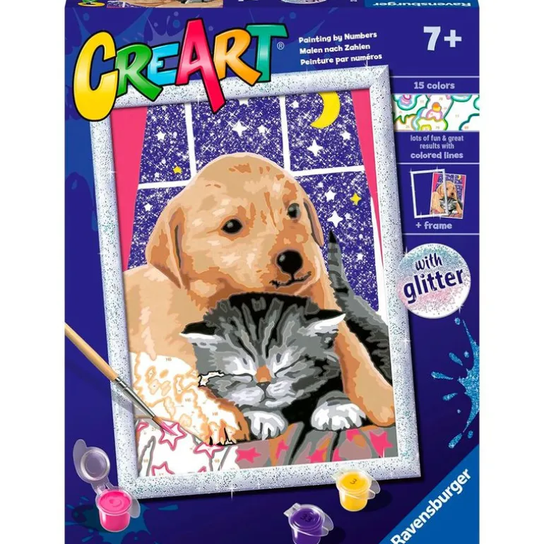 Pack de la colección CreArt con el que adentrarse en el mundo de la pintura y disfrutar de un tiempo de relax. En este kit de pintura por números encontrarás un tablero preimpreso, un pincel de doble punta para pintar campos más grandes y pequeños, pinturas acrílicas, una paleta y barniz para dar un acabado al cuadro.