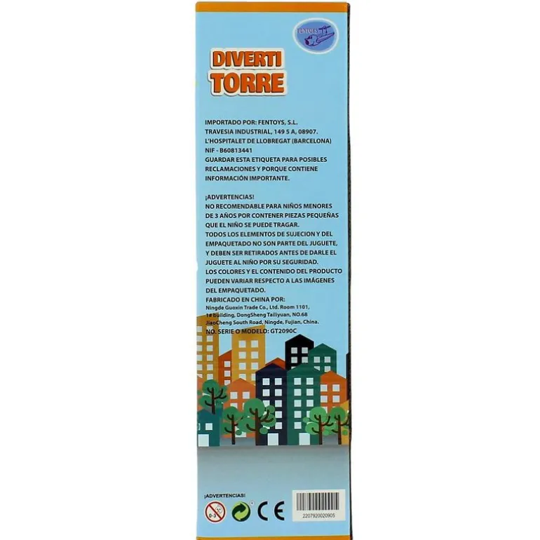 Piezas de madera con diferentes colores, para construir la torre mas alta. El objetivo del juego es sencillo, concéntrate y retira despacio y con gran habilidad las piezas sin que la torre caiga. Ganarás el juego si eres el último jugador en quitar la pieza antes de que la torre se derrumbe. Para 2 jugadores o más. Recomendado a partir de 3 años. Contiene 57 piezas.