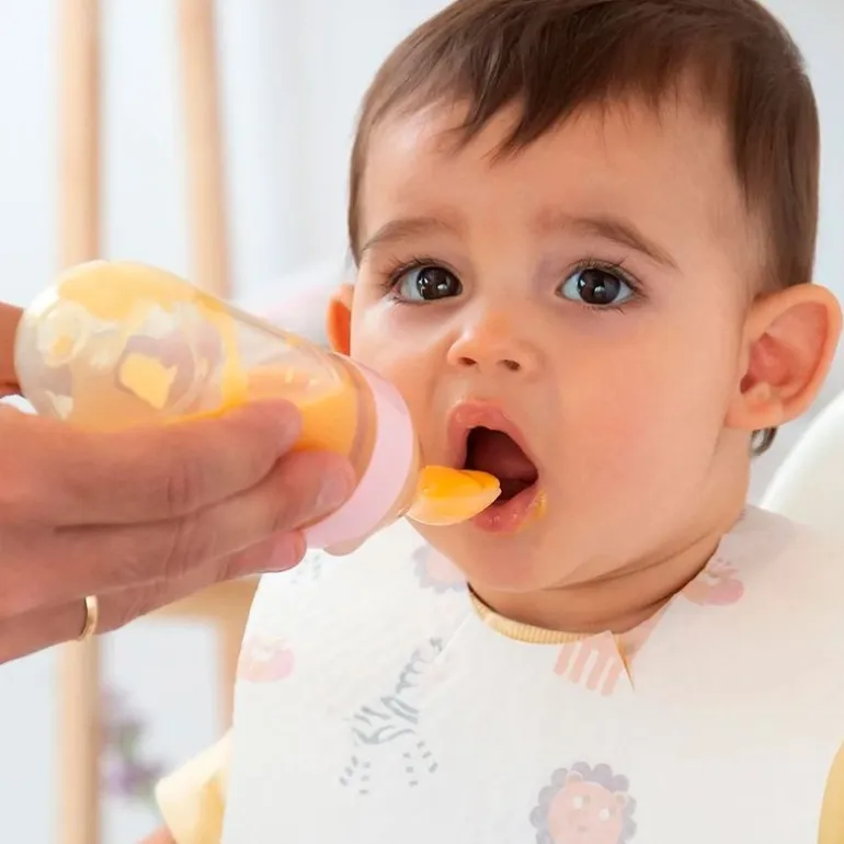 La cuchara dosificadora de papilla es muy cómoda ya que se puede usar tanto en casa como fuera. Es perfecta para empezar con las papillas o purés. La cuchara dispensadora de comida de Kiokids permite cargar de contenido la cuchara desde un dispensador que se llena por la base. Al ejercer un poco de presión sobre el depósito sale la cantidad deseada por una abertura que lo conecta con la base de la cuchara.