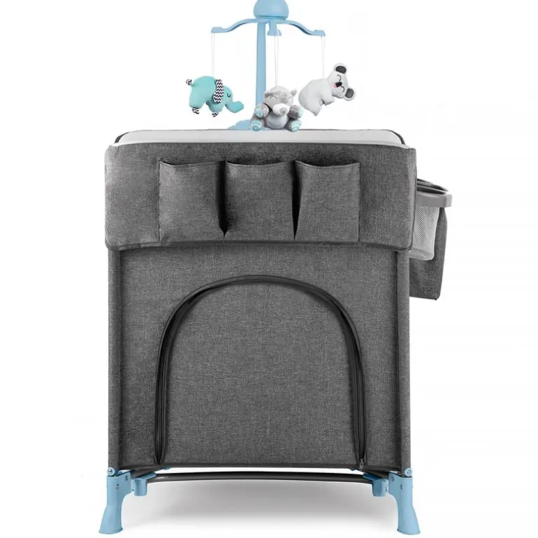 Cuna de viaje muy completa con muchos accesorios para tener a mano todo lo necesario para tu bebé.