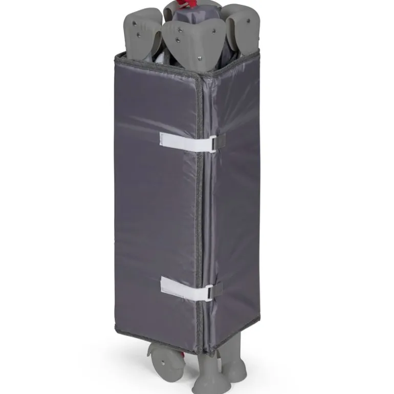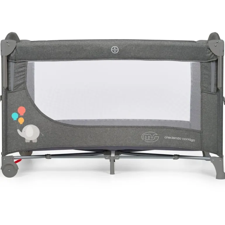 Cuna de viaje con doble altura y cambiador que dispone de la posibilidad de ser colecho, pudiendo bajar uno de los dos laterales con un novedoso sistema para poder ponerla pegada a la cama de los papás para tener al bebé cerca a la hora de dormir, de las tomas nocturnas, etc…
