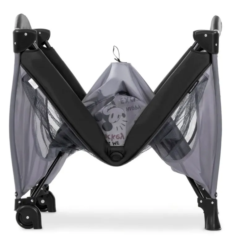 Sus laterales son de rejilla para una correcta ventilación y facilitar el contacto visual con el niño. Plegado fácil y compacto y ruedas para facilitar el traslado.