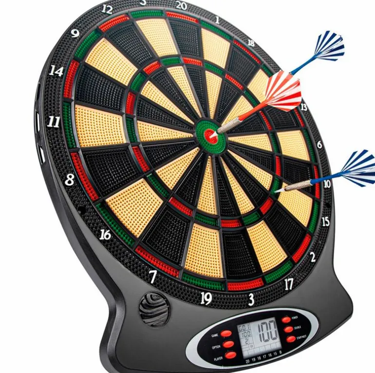 Diana electrónica que dispone de 18 estilos y 159 variaciones de juegos. Su pantalla es LCD, con puntuación digital y reproduce sonidos. Sus dimensiones son de 37.8 cm x 2.5 cm x 43 cm aproximadamente. Para 8 jugadores. Al pasar 30 minutos de inactividad se activará el modo espera.