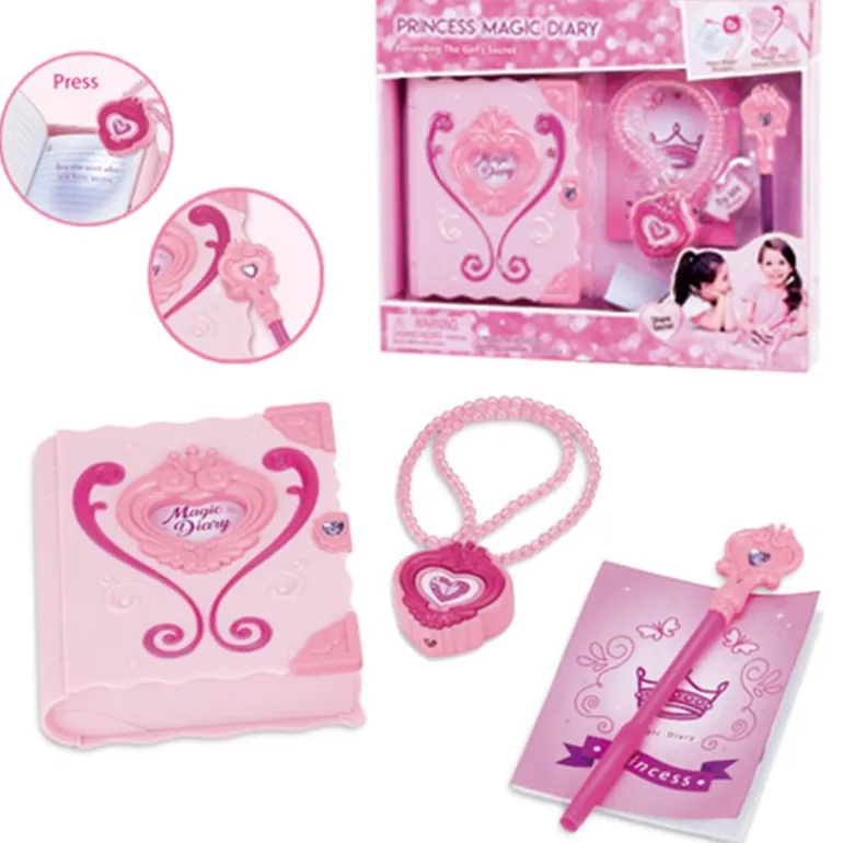 No recomendable para niños menores de 3 años por contener piezas pequeñas que el niño se puede tragar. No permita a los niños que se pongan piezas pequeñas en la boca. Se recomienda supervisión de un adulto. Funcionamiento a pilas incluidas en el collar y pilas no incluidas en el diario. Instrucciones de uso y funcionamiento de las pilas en el interior o en el empaquetado. Este juguete produce destellos que pueden desencadenar crisis de epilepsia en personas sensibles. Desechar inmediatamente las baterías usadas. Mantener las baterías nuevas y usadas lejos de los niños. Si cree que las baterías podrían haber sido tragadas o colocadas dentro de cualquier parte del cuerpo, busque atención médica inmediata. Todos los elementos de sujecion y del empaquetado no son parte del juguete, y deben ser retirados antes de darle el juguete al niño por su seguridad. Los colores y el contenido del producto pueden variar respecto a las imágenes del empaquetado.