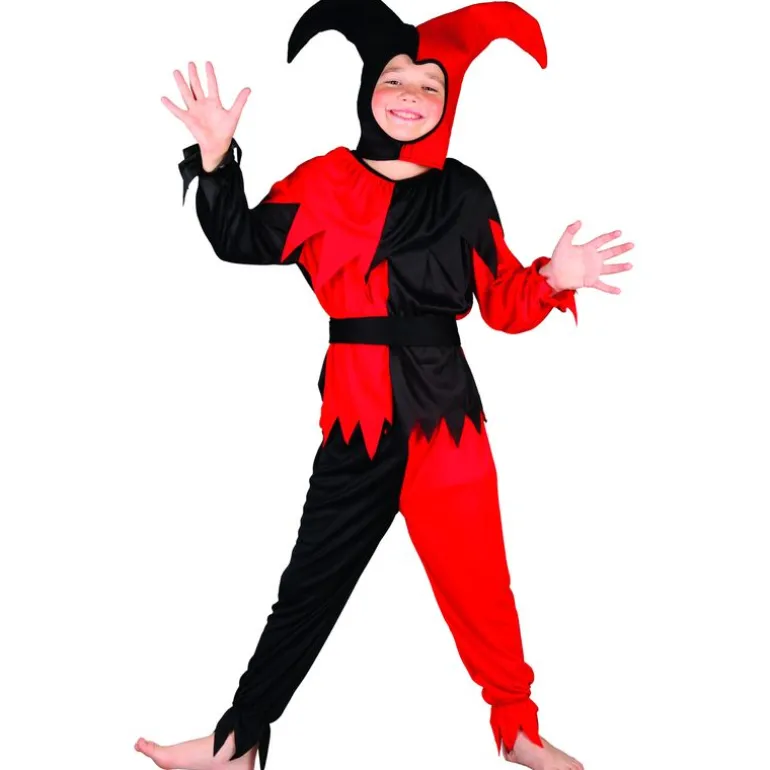 Divertido disfraz de bufón, compuesto por gorro, pantalones, camisa y cascabel. Talla S (Altura 110-120cm, pecho 62cm, cintura 57cm, 4-6 años) orientación aproximada.