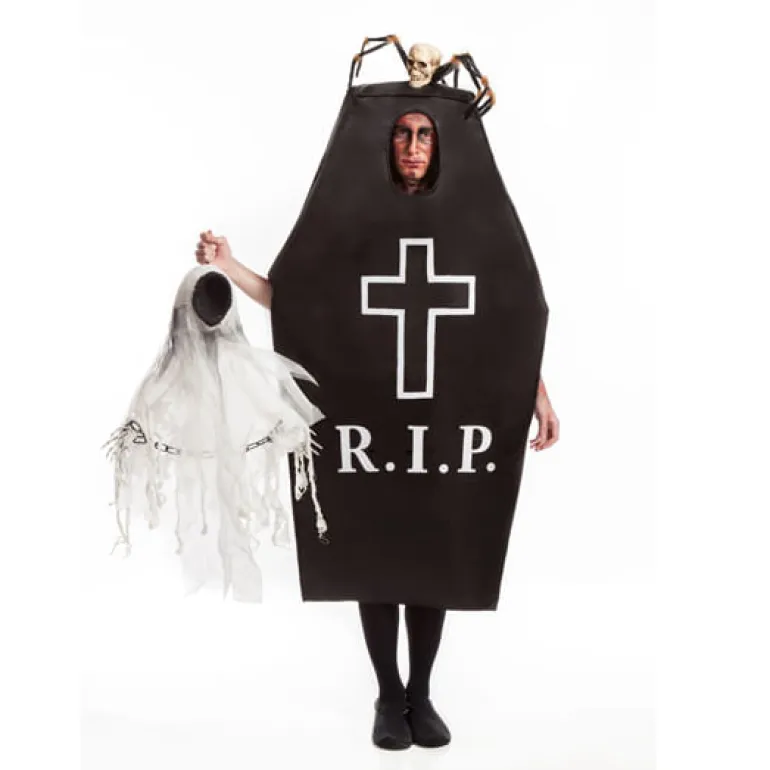 Disfraz de lapida para adulto compuesto por túnica con espuma. NO incluye medias, ni araña, ni fantasma. Talla única adulto.