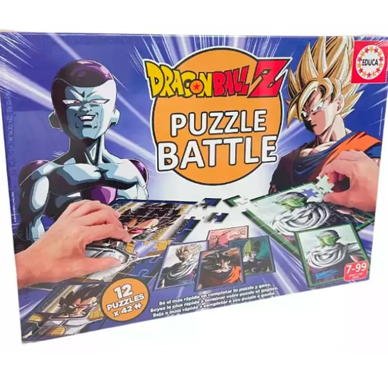 Pack en el que encontrarás 12 puzzles inspirados en personajes icónicos de Dragon Ball Z, cada uno formado por 42 piezas.