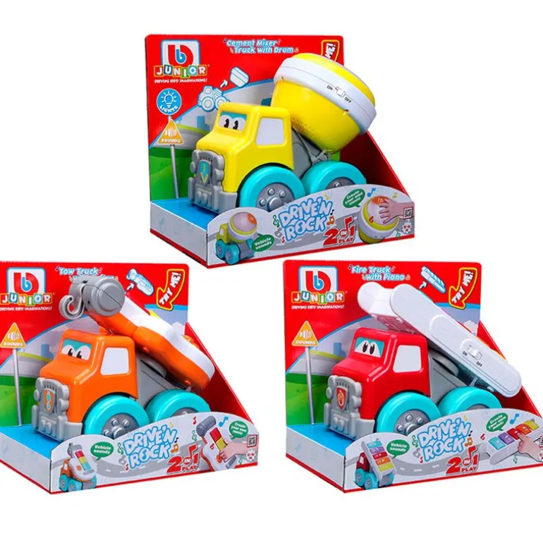 Vehículo de la colección Drive ‘N Rock que reproduce música y fomenta la coordinación ojo-mano.