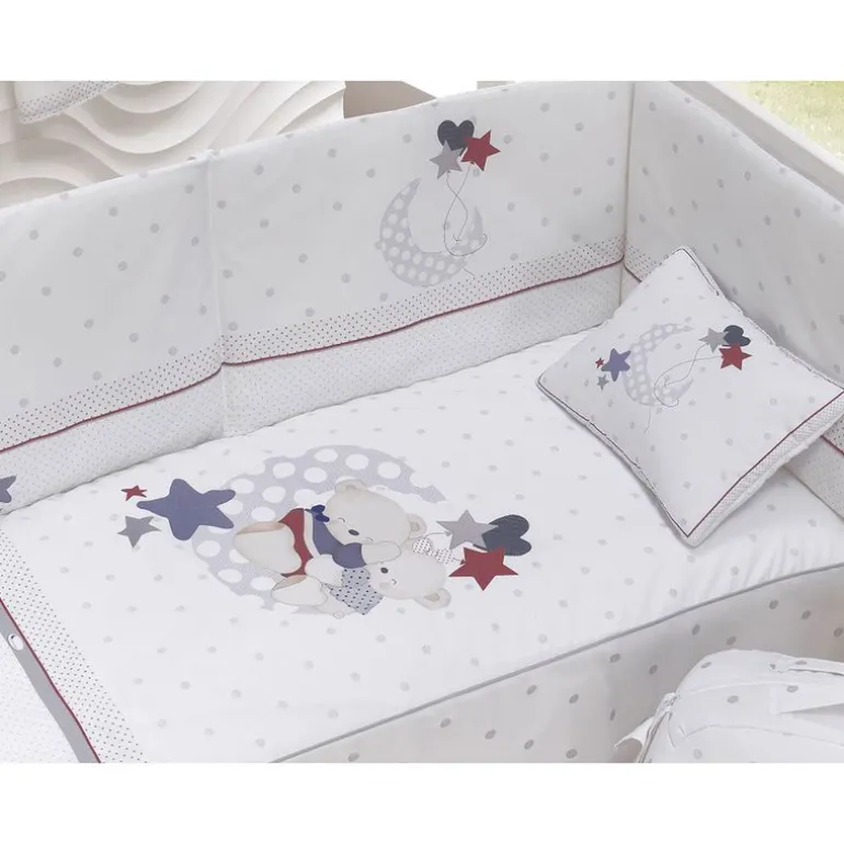 Este conjunto de ropa de cuna de 3 piezas está diseñado especialmente para cunas de 60×120 cm. Fabricado con tejidos 100% algodón de alta calidad, proporciona a la habitación de tu bebé una sensación cálida, confortable y segura.