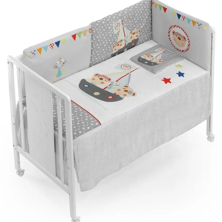 Este conjunto de ropa de cuna de 3 piezas está diseñado especialmente para cunas de 60×120 cm. Fabricado con tejidos 100% algodón de alta calidad, proporciona a la habitación de tu bebé una sensación cálida, confortable y segura.
