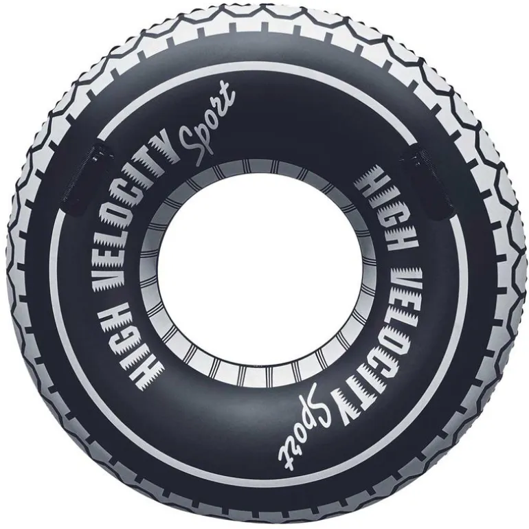 Flotador con la divertida forma de un neumático, ideal para disfrutar del sol y el buen tiempo, en la playa o piscina. Está fabricado en un material altamente resistente y dispone de 2 asas para poder sujetarse. Tiene un tamaño de 1.19 m x 47″ de diámetro e incluye parche de reparación. Recomendado a partir de 12 años.