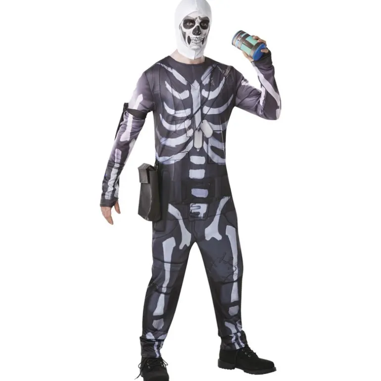Disfraz de Skull Trooper uno de los looks que aparecen en el videojuego Fortnite. Contiene un mono (jumpsuit), capucha, brazalete, bolsa y accesorio. Talla S (Talla 36), pecho 80-86cm, cintura 60-68cm, orientación aproximada. NO incluye calzado.