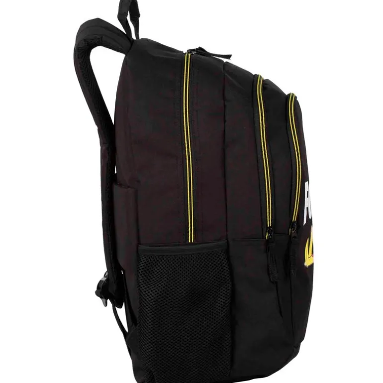 Mochila escolar con doble compartimento, bolsillo frontal y adaptable a carro (NO incluido/Se vende por separado). Tirantes y espaldera acolchada. Interior forrado. Dimensiones de 42 cm x 32 cm x 20 cm aproximadamente.