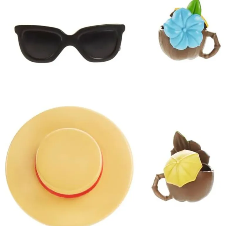 Viene acompañado de 8 accesorios diferentes para que lo personalices como más te guste, con un sombrero de verano, unas gafas de sol, un bastón, un batido, una falda hawaiana y 2 pelucas.