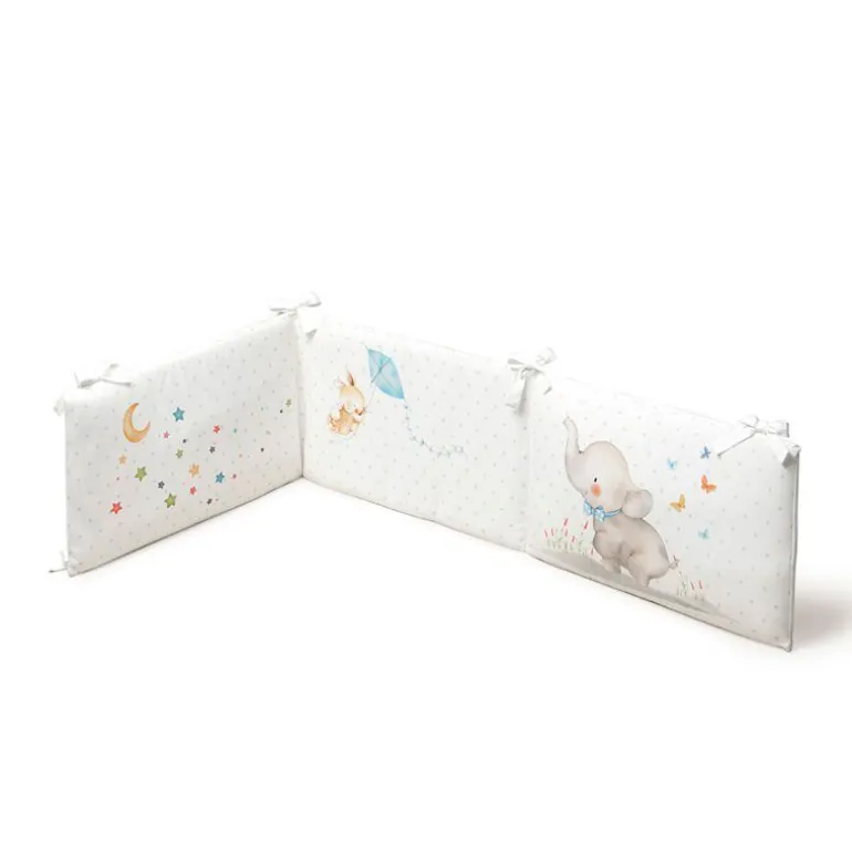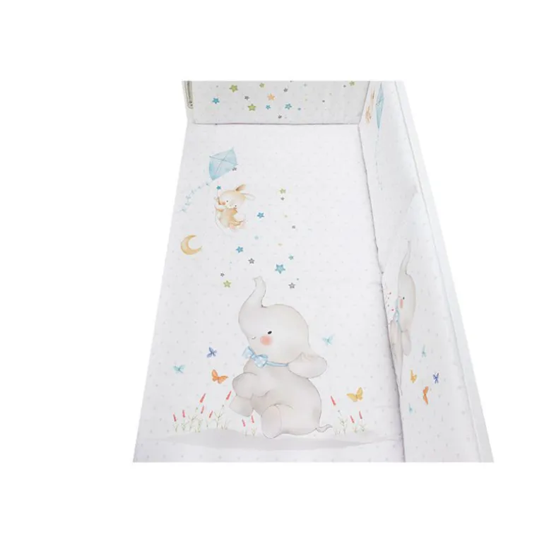 Conjunto de 2 piezas formado por funda nórdica desenfundable y protector chichonera con un precioso dibujo.