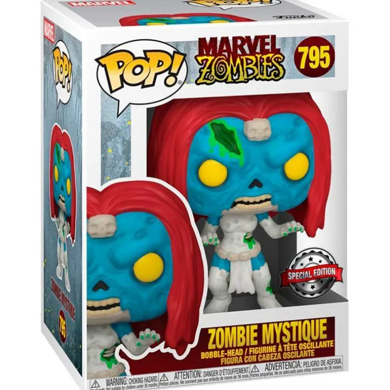 Figura fabricada en vinilo de la colección Funko POP con número 795, inspirado en Mística de la colección Marvel Zombies. Su tamaño es de 10 cm aproximadamente. Recomendado a partir de 3 años.