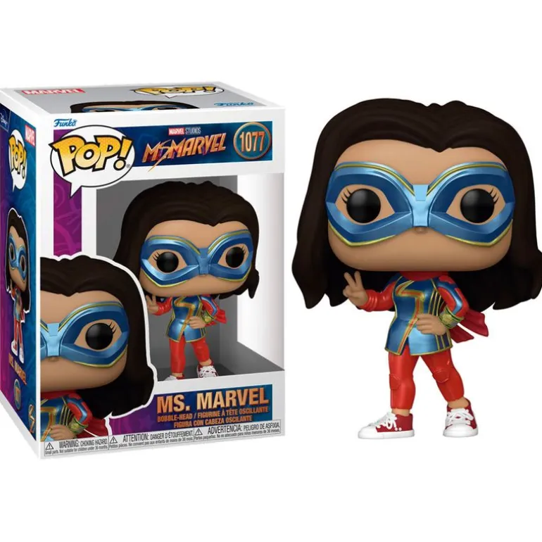Figura fabricada en vinilo de la colección Funko POP con número 1177, inspirada en el personaje de Ms. Marvel, de la serie de Disney+ con su nombre. Su tamaño es de 10 cm aproximadamente. Recomendado a partir de 3 años.