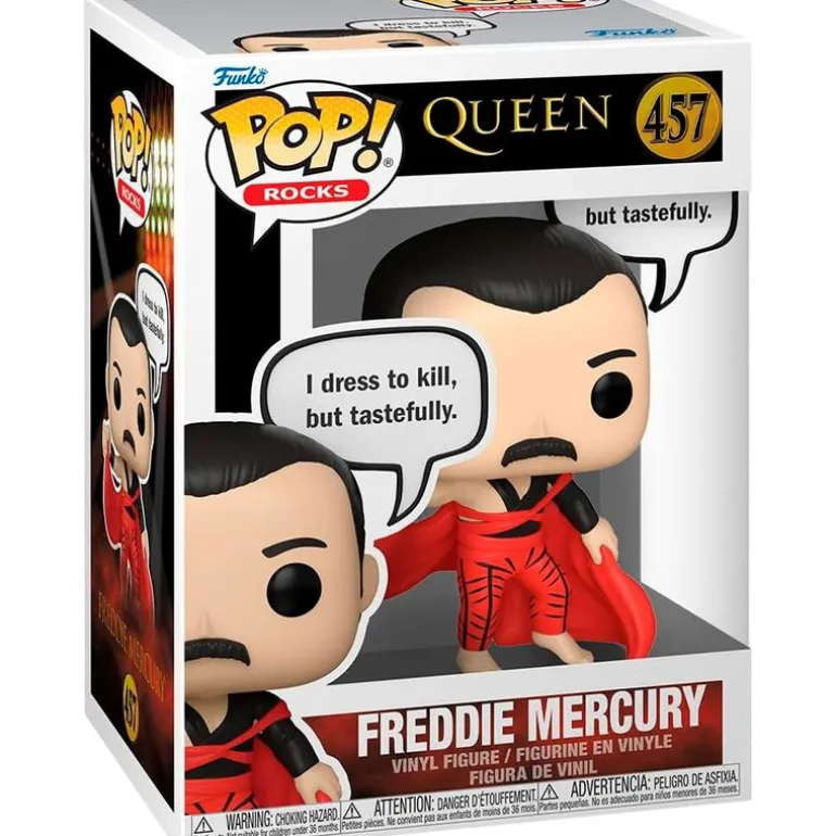 Figura fabricada en vinilo de la colección Funko POP con número 457, inspirada en el cantante Freddie Mercury.
