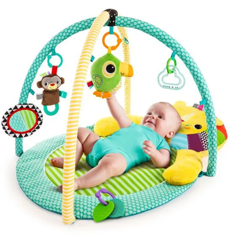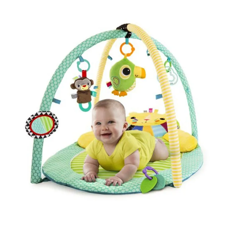 Tu peque tendrá un montón de espacio para jugar y crecer con este gimnasio de actividades con múltiples usos. Tu hijo puede explorar con un espejo de auto- descubrimiento de seguridad para bebés, sonajeros, peluches, mordedores y cuentas.