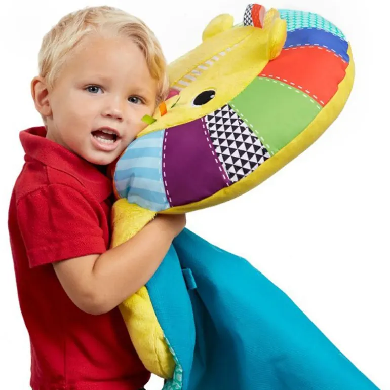 La cabeza del león hace de cojín para mayor comodidad del bebé.