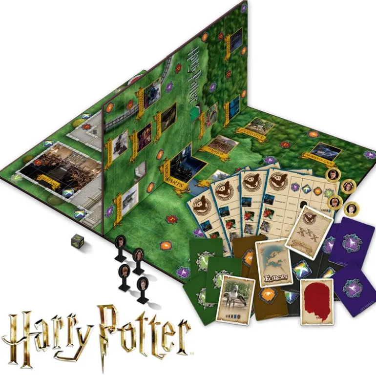 Podrás girar el tablero para ver el interior y exterior de la escuela de Hogwarts. Reúne las pistas para encontrar a las diferentes criaturas… ¡Pero cuidado! Salir de la escuela te puede costar pistas y tiempo.