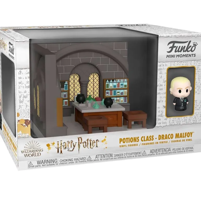 Detallado escenario de la colección Funko Mini Moments inspirado en la clase de pociones de Harry Potter. En el interior encontrarás la mini figura de Draco Malfoy. El playset tiene unas dimensiones de 10 cm x 10 cm aproximadamente. Recomendado a partir de 3 años.