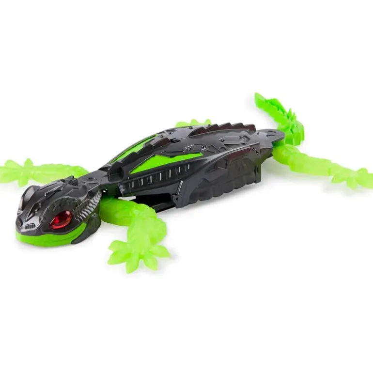El lagarto es luminoso ¡Sus ojos se iluminan y podrás verlo en la oscuridad! La cola y las extremidades son de silicona verde y el cuerpo de plástico negro.