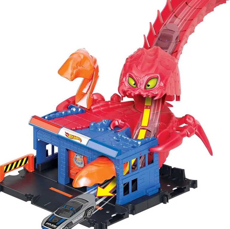 Pack de la colección Hot Wheels City. El Escorpión dispone de una cola-pista plegable y extensible de 76.2 cm aproximadamente ¡Escapa por las rutas antes de que te atrape! Esta pista es compatible con los set de la colección Hot Wheels City. Recomendado a partir de 4 años.