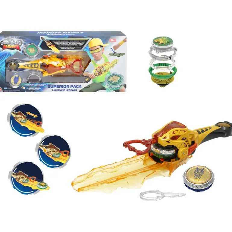 Espada de la colección Infinity Nado que incluye un sistema de lanzamiento completamente nuevo. Contiene una peonza y piezas alternativas para que puedas personalizarla como te guste.
