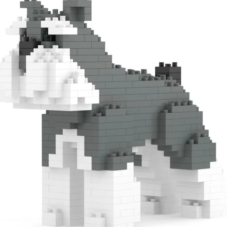 Schnauzer de la colección Jecka que podrás construir con una tecnología de bloqueo para garantizar que estas estructuras de ladrillo se puedan construir de forma resistente y sin pegamento.
