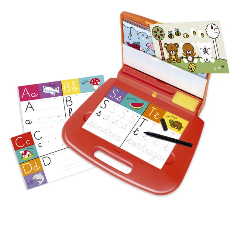Maletín educativo para aprender a escribir tus primeras palabras con el abecedario en catalán. Incluye láminas con letras en mayúscula y minúscula. Tiene luz y una base que actúa como sistema autocorretor. Ideal para iniciarse en la lectoescritura, practicar la lectura, componer palabras sencillas, separar palabras por sílabas o aprender nuevo vocabulario.