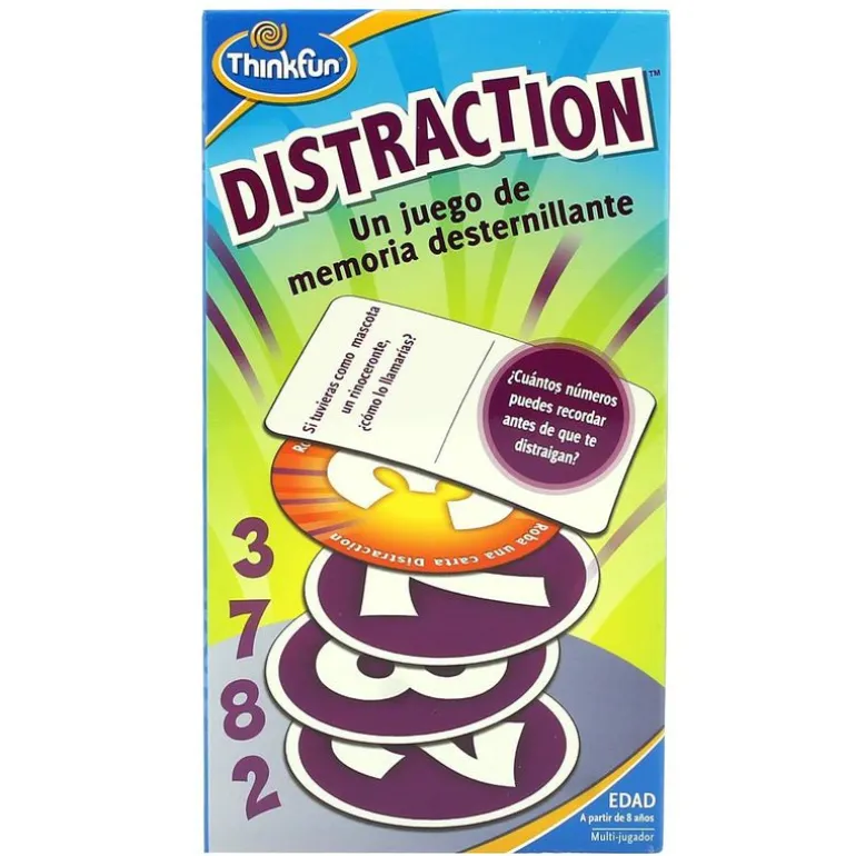 Diviértete con este fantástico juego ideal para toda la familia, donde se trabaja la memoria y la concentración. Intenta recordar la secuencia de números que han salido y que poco a poco irá en aumentando. Cuidado cuando saques una carta DISTRACTION, hay que responder a una pregunta antes de repetir la secuencia de números y decirla en orden. Ojo que si descubren que lo has dicho mal, te llevas todas las cartas. Gana la partida quien no tenga cartas. Así que no te distraigas. Incluye 1 baraja de 54 cartas con números, 1 baraja de 50 cartas “distraction” con 100 preguntas o acciones para distraer. De 2 a 6 jugadores. Duración 15 minutos. A partir de 8 años.