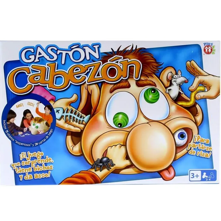 Disfruta de una tarde diferente con Gastón Cabezón, un juego que a veces asusta o puede dar algo de repulsión, pero con el que seguro te partes de risa. Coge una carta del montón y mira el objeto que hay dibujado, mete tu mano dentro de la cabeza de Gastón y rebusca en su interior el objeto de la carta. ¿Serás capaz de encontrar el objeto con sólo tocarlo? ¡¡Ten cuidado con lo que sacas, no te equivoques!! Si consigues ser el primer jugador en encontrar todos los objetos dentro de la cabeza de Gastón ganarás la partida. El juego incluye: 1 cabeza blanda, 15 objetos «asquerosos» y 24 cartas de juego. Edad recomendada a partir de 3 años. De 2 a 4 jugadores.