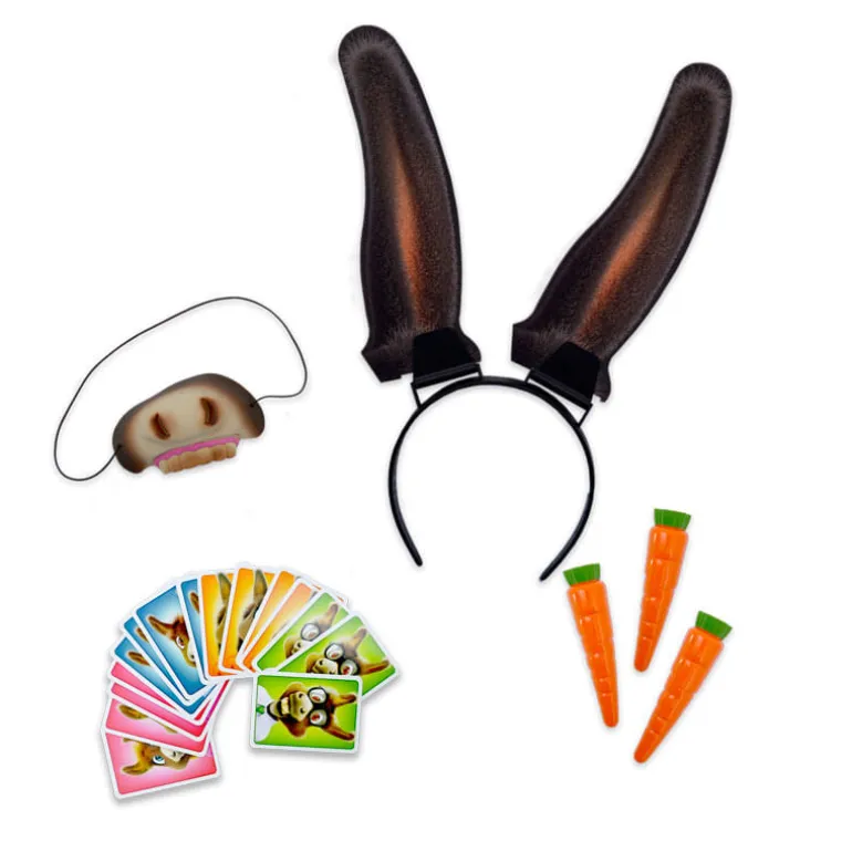 Divertido juego en el que tendrás que ser rápido adivinando y emparejando tus cartas para no ser el burro. Consigue emparejar todas tus cartas, coge rápido tu zanahoria y te librarás de ser burro. Si pierdes tres veces… ¡¡burro serás!! El juego incluye 1 orejas de burro, varias zanahorias de plástico, 1 hocico de burro y una baraja de cartas. Edad recomendada a partir de 6 años. De 2 a 4 jugadores.
