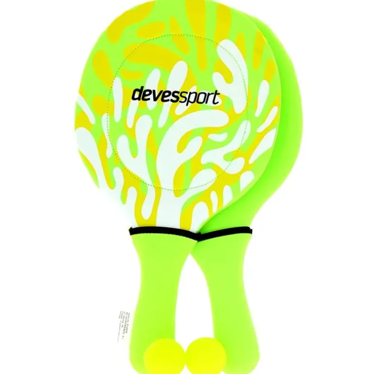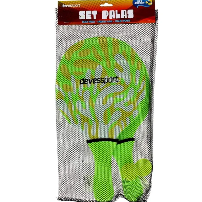 Juego de palas de Neopreno, en color verde, para disfrutar este verano en la playa o en la piscina. Una combinación perfecta de deporte y diversión. El set incluye 2 palas y 2 pelotas.