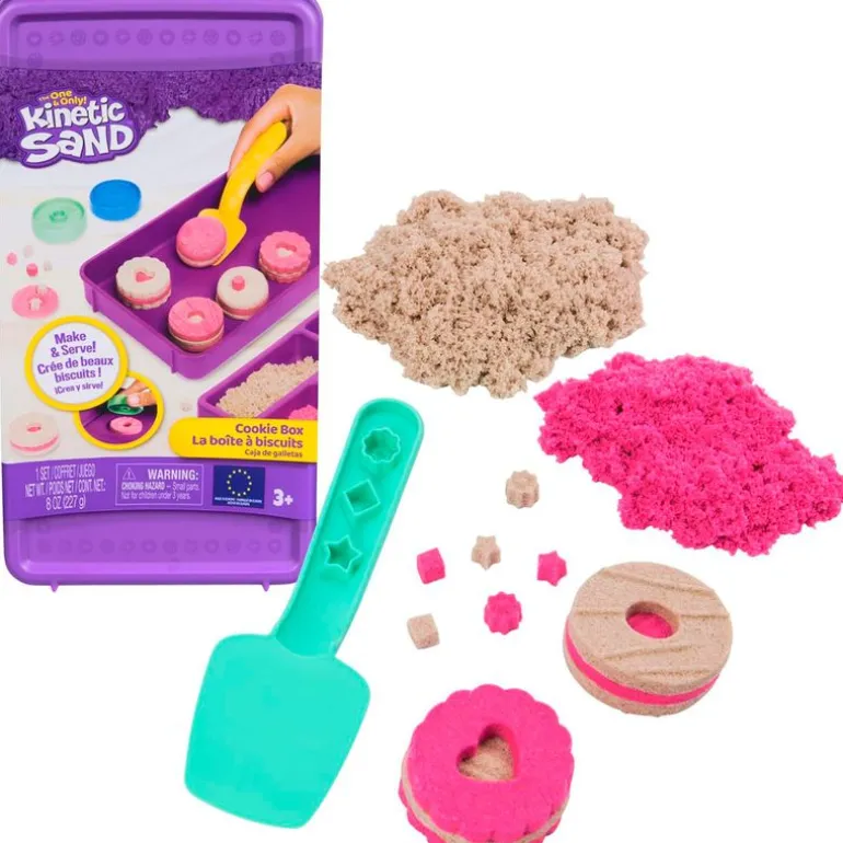 Cuando termine el juego, se puede guardar toda la arena y los accesorios en la caja reutilizable, manteniendo todo organizado y listo para la próxima sesión de repostería creativa.