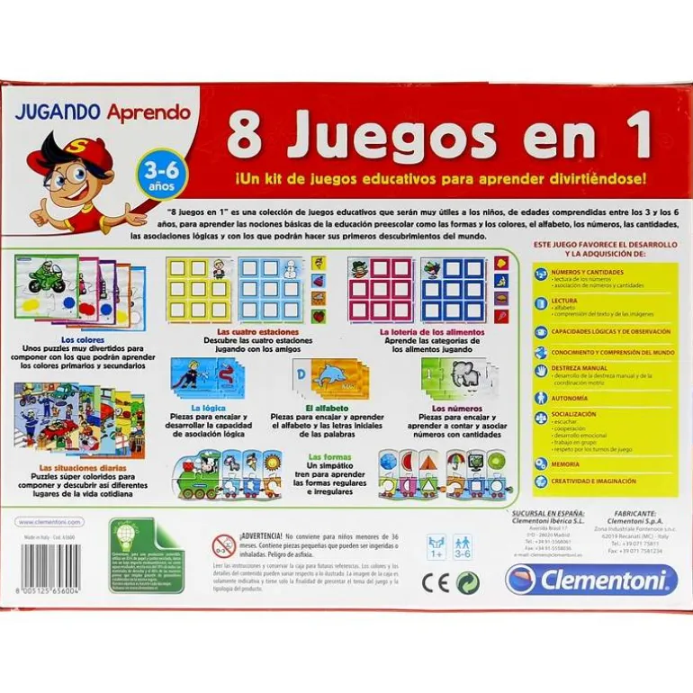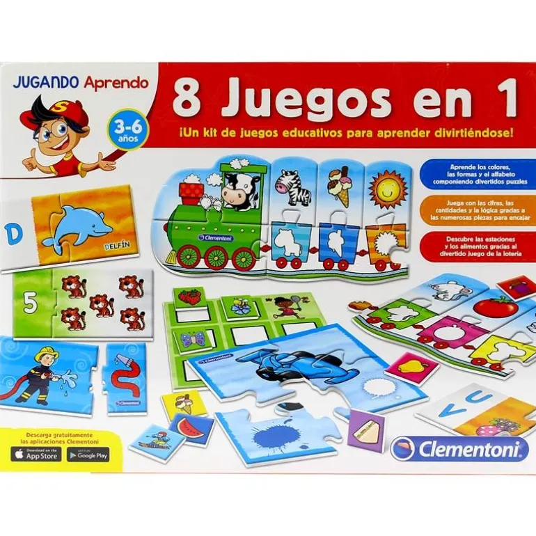 Contiene 8 juegos educativos y instrucciones para jugar.