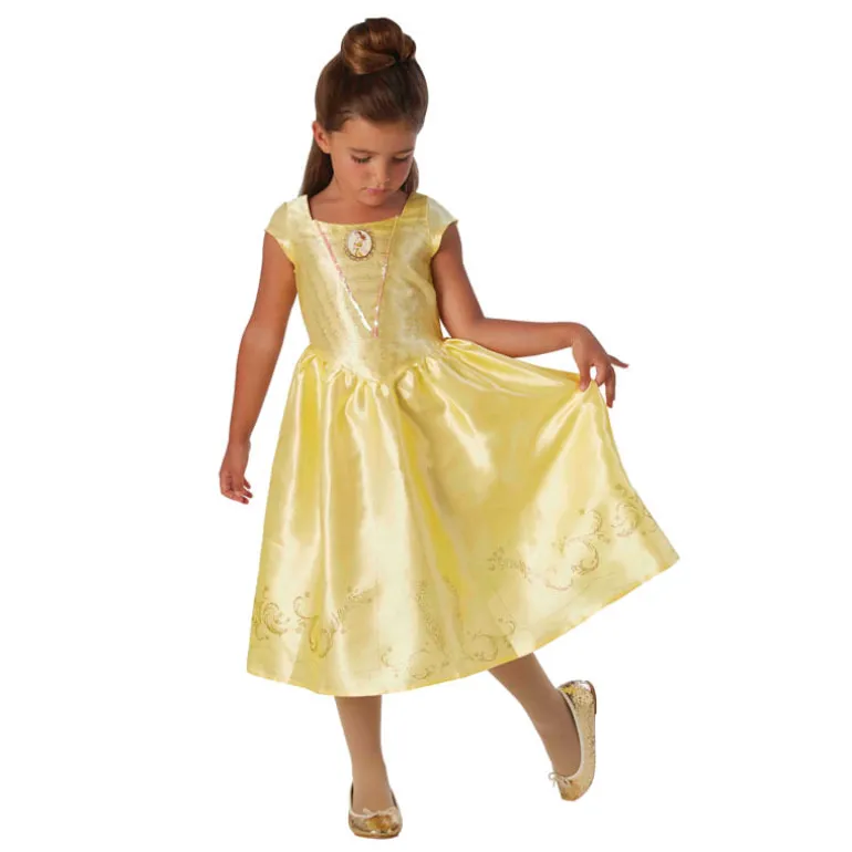 Bonito y elegante disfraz de la princesa Bella, de la película La Bella y la Bestia. Recrea grandes escenas de la conocida película de Disney, ahora llevada a la gran pantalla en imagen real. El disfraz incluye vestido en color amarillo, con detalles dorados y la imagen de bella en el pecho del traje. NO incluye calzado ni medias.