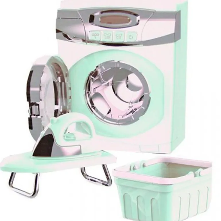 Lavadora con complementos para que los más pequeños puedan aprender e interactuar con las tareas de la casa mientras se divierten. La lavadora se abre de verdad y viene acompañada de una pequeña tabla, una plancha y un canasto. Funciona con pilas NO incluidas. Recomendado a partir de 3 años.