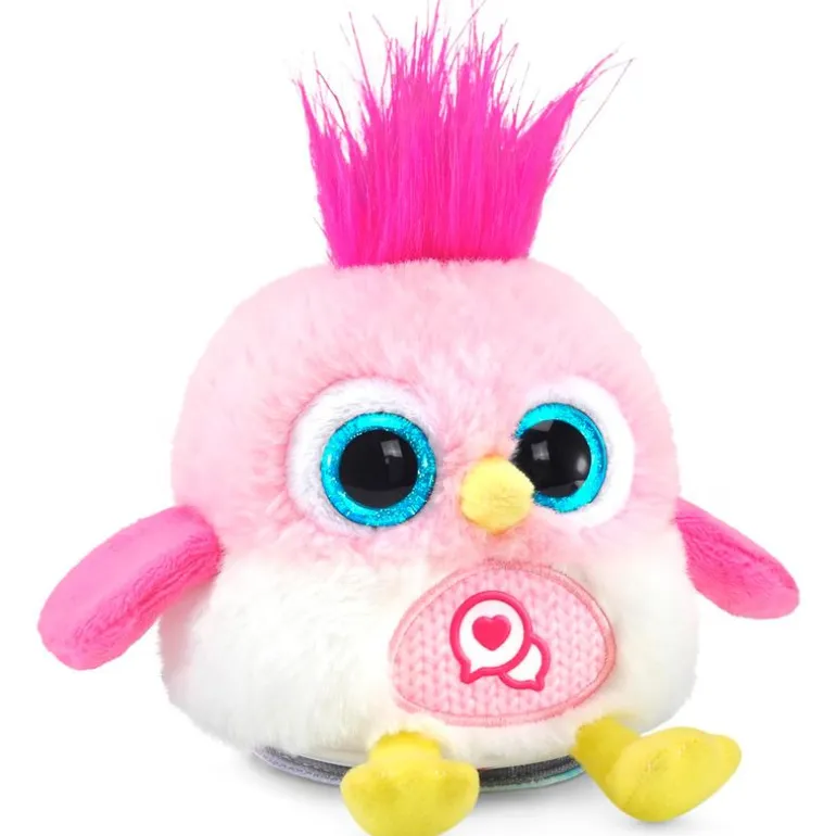 Peluche interactivo mascota con voz y grabadora para coleccionar. Sensor de movimiento y botones en ala y barriga activando melodías y función grabadora que repite lo que se le habla. Los ojos cambian de color y disponen de luz para ver en la oscuridad. Contiene una función que convierte la voz grabada en un trinar de pájaros manteniendo melodía y tono.Se coloca en el hombro del niño o en cualquier otro lugar como encima de una mesa, para conseguir casi una mascota real. Melodías incluidas y efectos especiales que reproducen el sonido real de los pájaros representando diferentes estados emocionales (alegría, tristeza, enfado, sorpresa, preocupación y muchas otras más). Funciona con 2 pilas AAA incluidas (pilas de demostración). Recomendado a partir de 4 años.