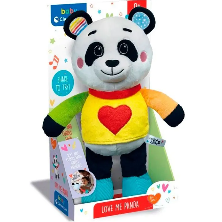 Adorable peluche interactivo en forma de oso panda que se convertirá en el mejor amigo de tu bebé. Está fabricado con diferentes materiales y llamativos colores que estimularán a tu bebé. Reproduce sonidos y melodías que tranquilizarán a tu bebé y le ayudarán a conciliar el sueño. Funciona con pilas incluidas. Recomendado a partir de 0 meses.