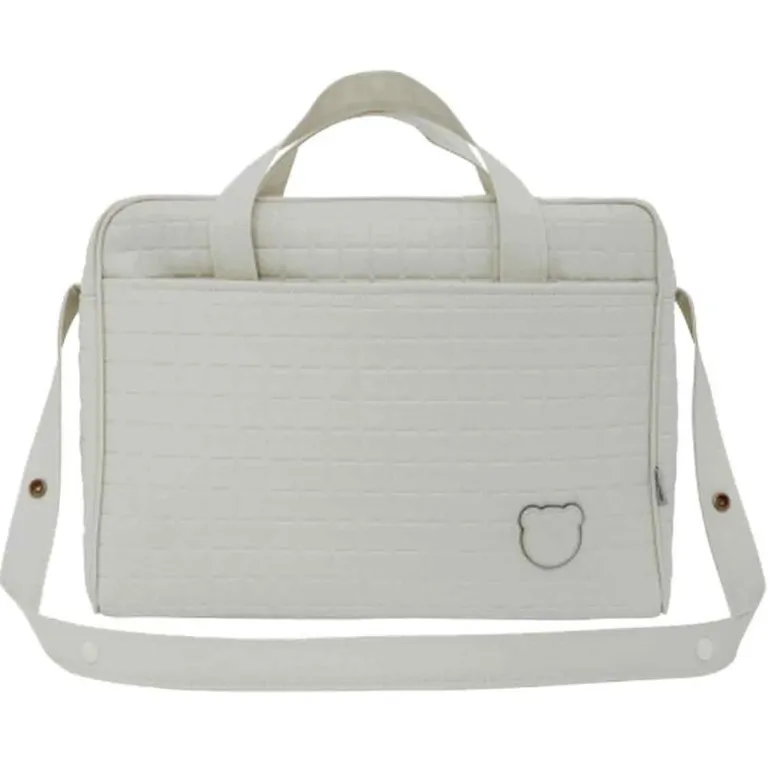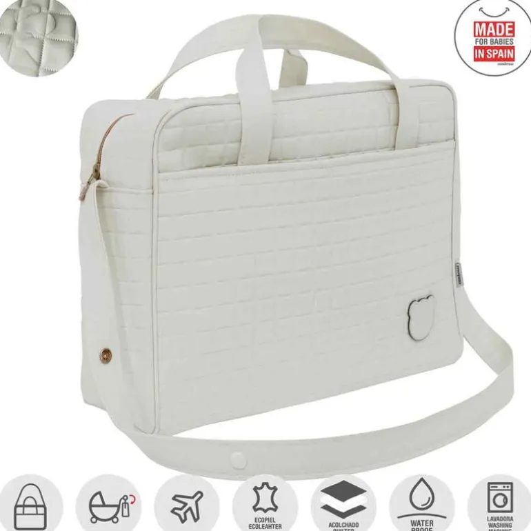 El Bolso Maletín de Cambrass es de uso maternal y sirve para transportar los productos necesarios de uso diario para el bebé especialmente en viajes. Su sistema de asas cortas de 60 cm. y asa larga de 120 cm. lo hace útil tanto como bolso de mano o maletín así como de bandolera o incluso para el carro. El tejido interior (con acabado resinado) con el que está confeccionado el bolso cuentan con un acabado impermeable que sumado a su base rígida aporta estabilidad evitando que pierda su forma tanto lleno como vacío e incluso después del lavado. Este bolso, cuya capacidad es de 25.8 litros, dispone de prácticos bolsillos frontales interiores y exteriores que aumentan su capacidad permitiendo guardar pequeños objetos. Además su cierre con cremallera YKK de alta calidad garantiza una larga duración.