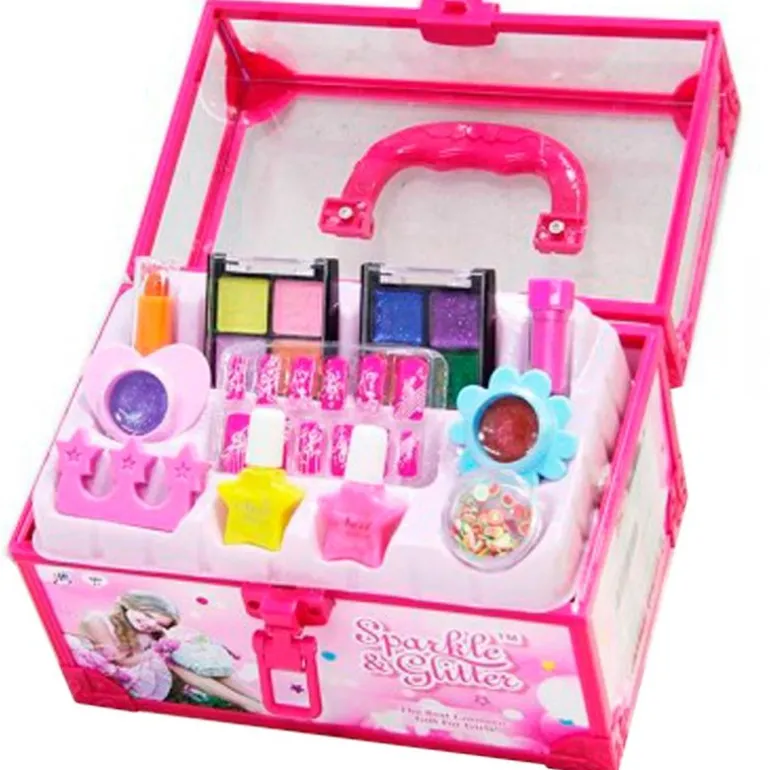 En el interior encontrarás accesorios para poder hacerte la manicura, coloretes brillantes, brillos de labios y pintalabios.