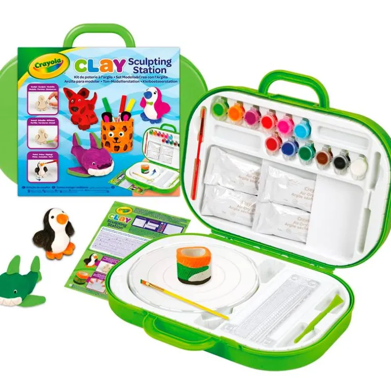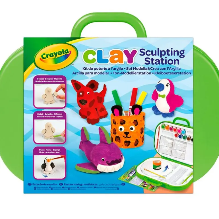 Maletín con asa que se abre y se convierte en una estación de escultura con todo lo necesario para moldear y esculpir tus creaciones con arcilla. En el interior encontrarás todo lo necesario para comenzar, arcilla, herramientas para moldear y tallar y pinturas. Podrás llevarlo donde quieras contigo. Contiene una guía de escultura para realizar alucinantes creaciones. Recomendado a partir de 6 años.
