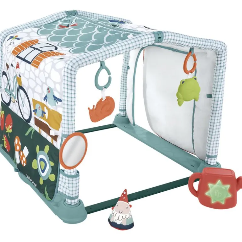Manta de actividades casita de campo 2 en 1, se transforma para que disfrutes de 3 opciones de juego. Los más pequeños de la casa quedarán maravillados con los juguetes colgantes de los arcos y podrán intentar alcanzarlos. El panel se puede doblar para que los bebés intenten alcanzar los juguetes desde la manera más cómoda mantita. Se transforma fácilmente en un túnel y una cabaña. Tu bebé puede dar golpecitos a la regadera que incluye para activar 20 minutos de divertida música, sonidos y luces multicolores ¡La cabaña tiene puerta para que tu bebé pueda asomarse! La mantita puede lavarse fácilmente en la lavadora. Ideal para el desarrollo de las habilidades sensoriales, la motricidad gruesa y la motricidad fina. Recomendado a partir de 0 meses.
